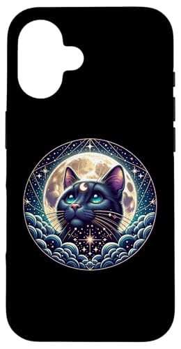 Mystical Cat Beneath a Radiant Full Moon Case for iPhone 16 Plus