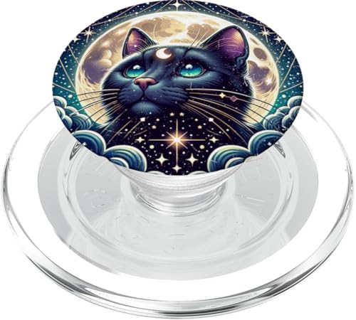 Mystical Cat Beneath a Radiant Full Moon PopSockets PopGrip for MagSafe