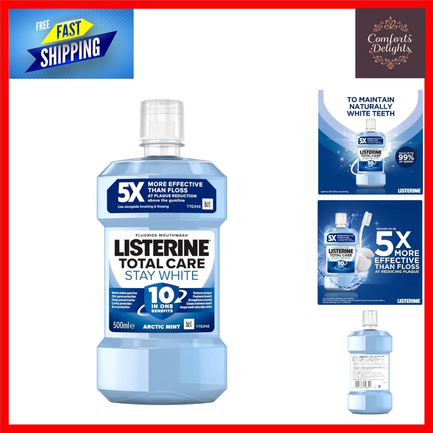 Listerine Total Care Stay White Mouthwash (1x 500ml) 10-in-1 Benefit Mouthwash