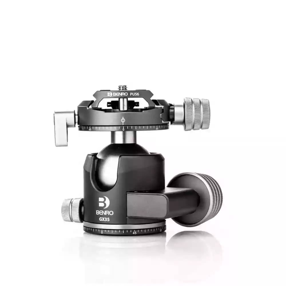 Benro GX35 Low Profile Ballhead with PU56 Plate, 35kg/77lb Capacity, Dual Panning, Aluminum, Arca-Swiss, Ultralight, Secure Locking Mechanism