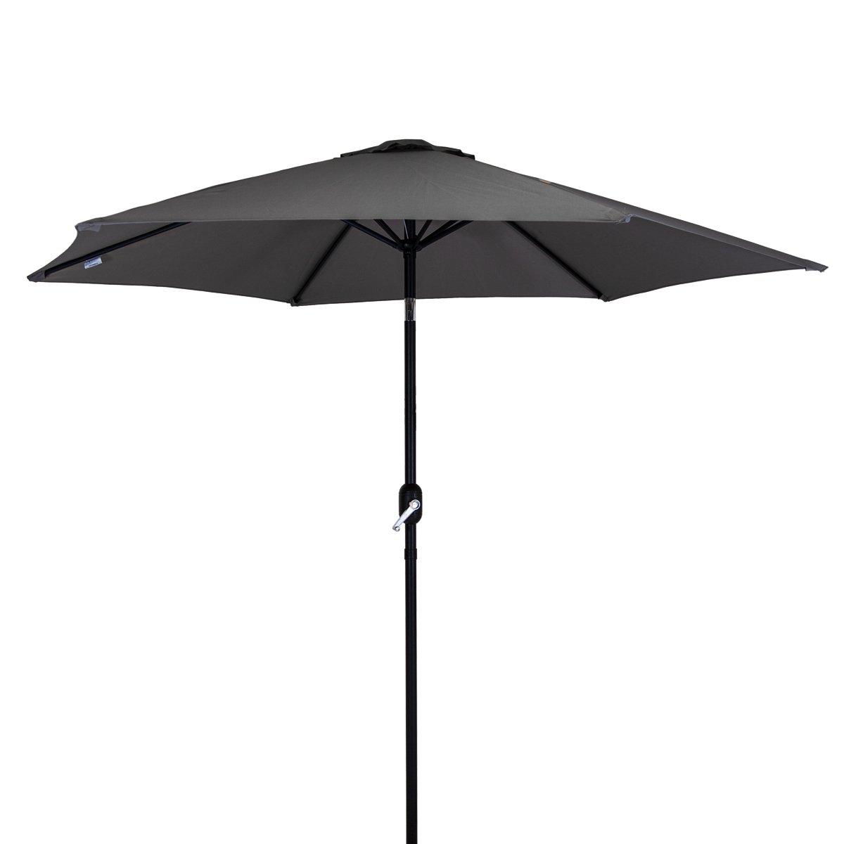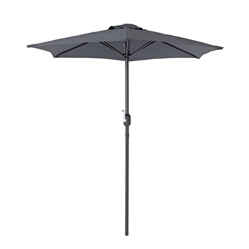CHARLES BENTLEY Outdoor, Garden, Patio 2m Parasol Shade Umbrella, 2.5kg, Water Resistant, Sunshade, Free Standing, Crank Winding System, 38mm Pole, Steel Frame, In Grey (225x200cm)