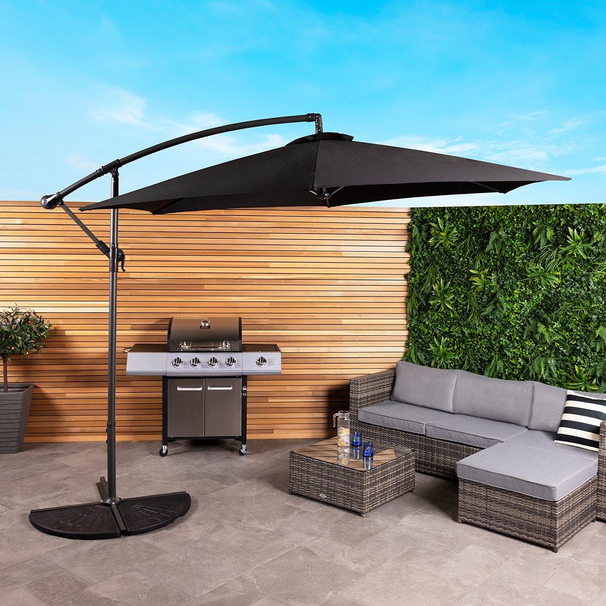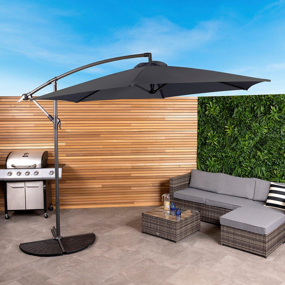 Charles Bentley Outdoor, Garden, Patio 3.5m 8 Strut Premium Quality Cantilever Outdoor Versatile Umbrella Parasol, Water Resistant, Sunshade, Free Standing, Adjustable, Canopy, Grey (350x262)