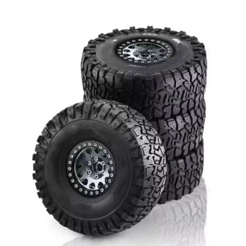 PLOQAZEH RC Models Parts For Axial For SCX10 RR10 AX10 For Wraith 90048 90018 KM2 1/10 RC Car 4PCS 1.9 Inch Beadlock Wheel Rims Rubber Tire For Rock Crawler(Dark Grey)