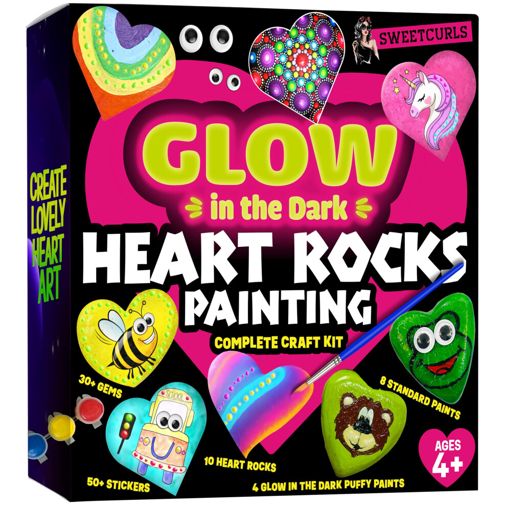 Hearts Rock Painting Kit for Kids - Glow in The Dark - Arts and Crafts for Girls Ages 4-12 - Valentines Gifts for Girls Art Toys Kids Craft Kits - Bir