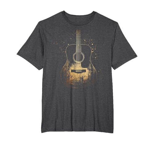 Vintage Distressed Acoustic Guitar Player Rock & Roll Music T-Shirt, Men, Dark Heather Grey, 4X-Large
