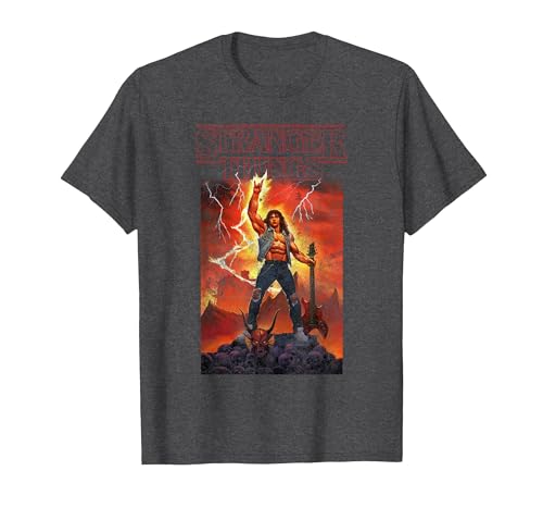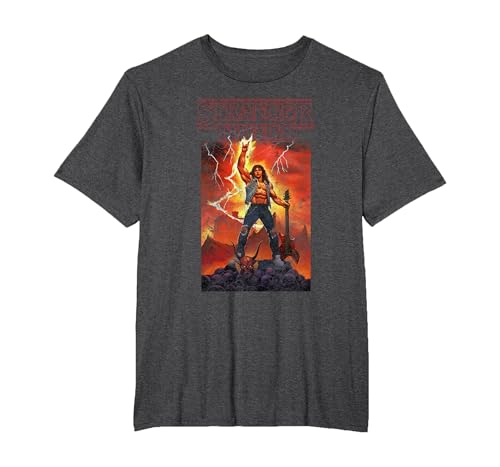 Stranger Things Rock on Eddie T-Shirt, Men's Big and Tall, Dark Heather Grey, 4X Tall