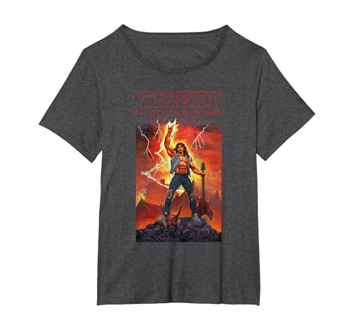 Stranger Things Rock on Eddie T-Shirt, Women's Plus, Dark Heather Grey, 4X