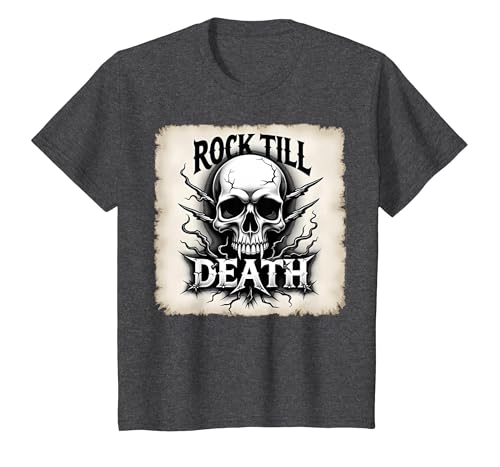 Heavy Metal Rock Till Death Skull Graphic T-Shirt, Kids, Dark Heather Grey, 4 Years