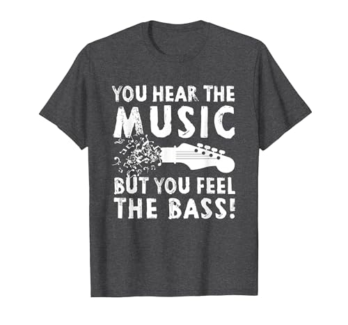Hear Music Feel Bass Guitar Bassist Guitarist Musician Rock T-Shirt, Men, Dark Heather Grey, 4X-Large