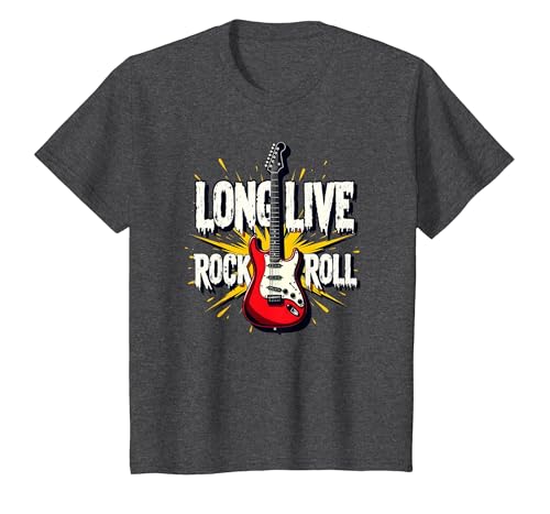 Long Live Rock & Roll - Iconic Guitar for Music Lovers T-Shirt, Kids, Dark Heather Grey, 4 Years