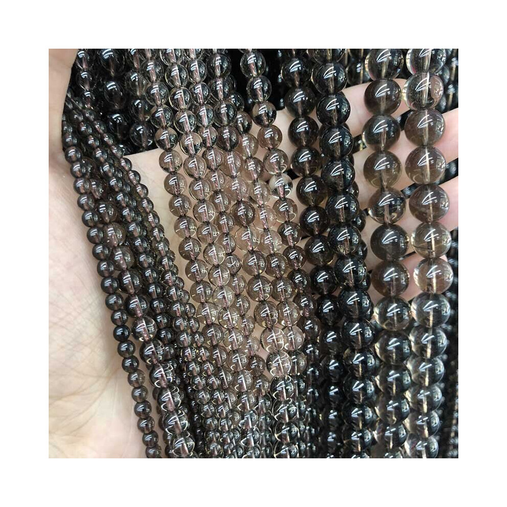 (Dark Grey-6mm 63pcs beads 6mm) Natural Rock Crystal Smoky Quartzs Loose Round Beads 4 6 8 10 12mm Brown Spacer Beads Fit Diy Jewelry Making
