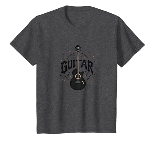 Guitar Melody Maker Rock Star Musician Gift T-Shirt, Kids, Dark Heather Grey, 4 Years
