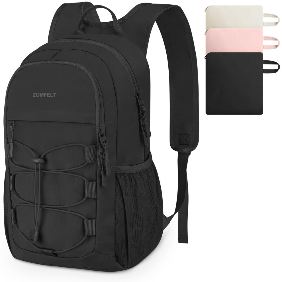 ZOMFELT Small Hiking Backpack, 15L Lightweight Small Rucksack, Backpacks for Men Women, Foldable Waterproof Backpack, Packable Berghaus Backpack for Hiking, Cycling, Walking, Travel, Black