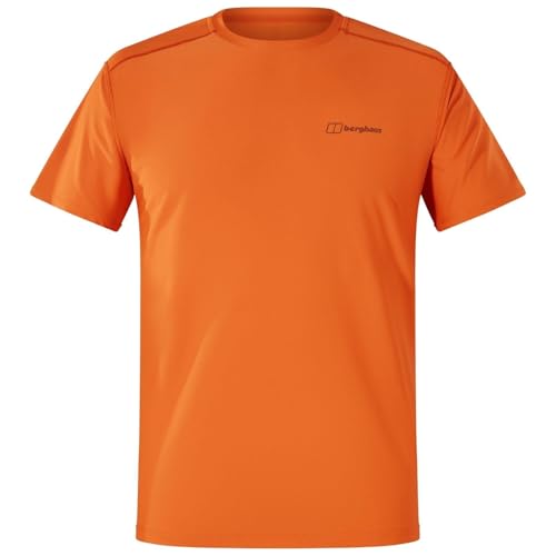 Berghaus Men's 24/7 Short Sleeve Crew Tech Baselayer T-Shirt | Moisture Wicking | Breathable, Orange, 2XL