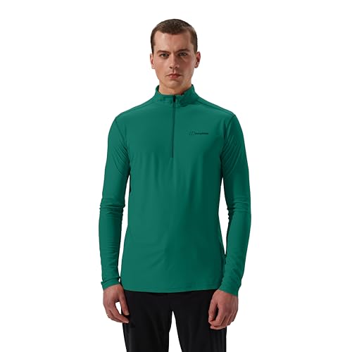 Berghaus Men's 24/7 Half Zip Long Sleeve Tech Baselayer T-Shirt | Moisture Wicking | Breathable, Green, L