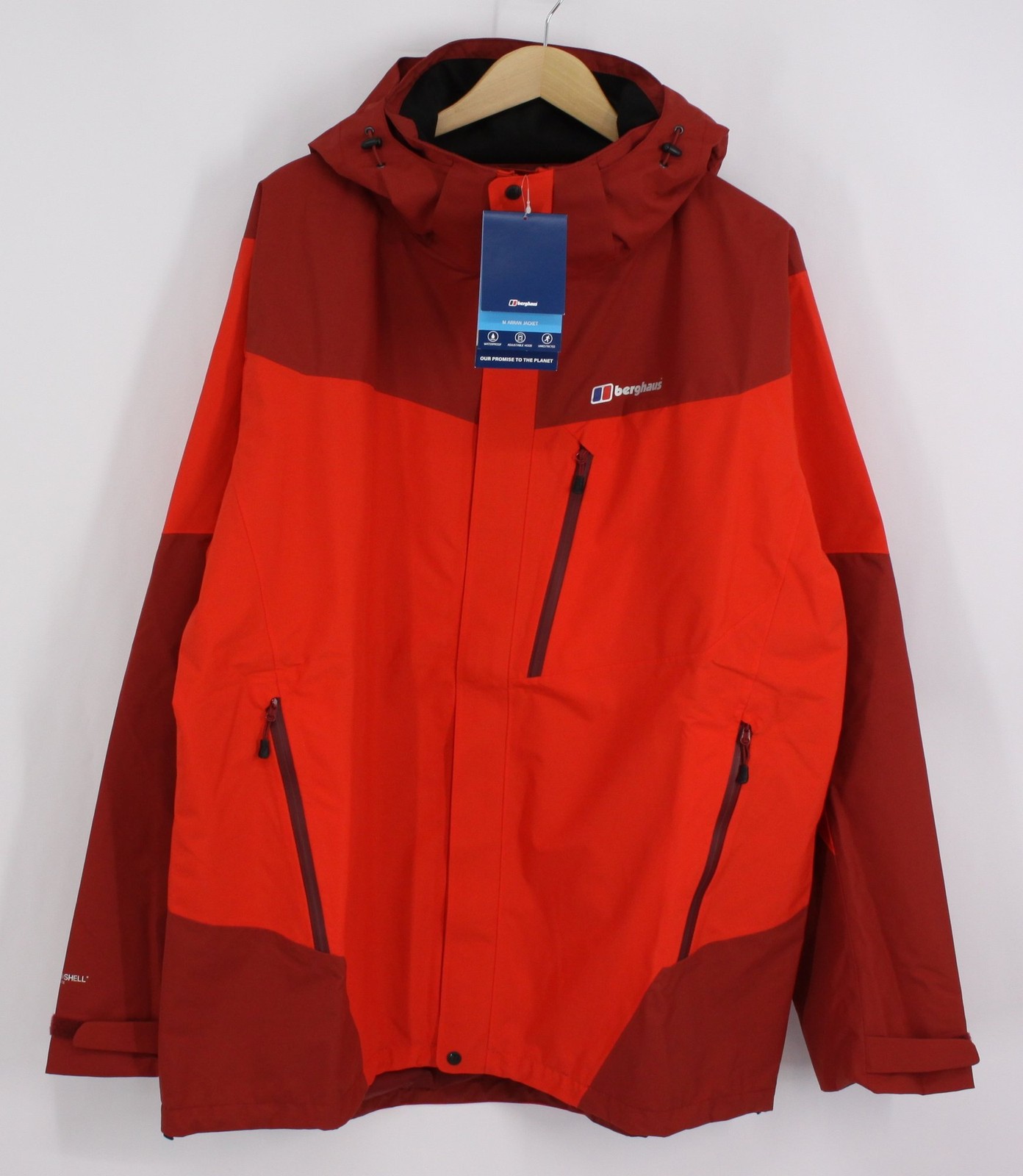 BERGHAUS MENS ARRAN SHELL JACKET WATERPROOF OUTDOOR SIZE XXL RED RRP £200 IB
