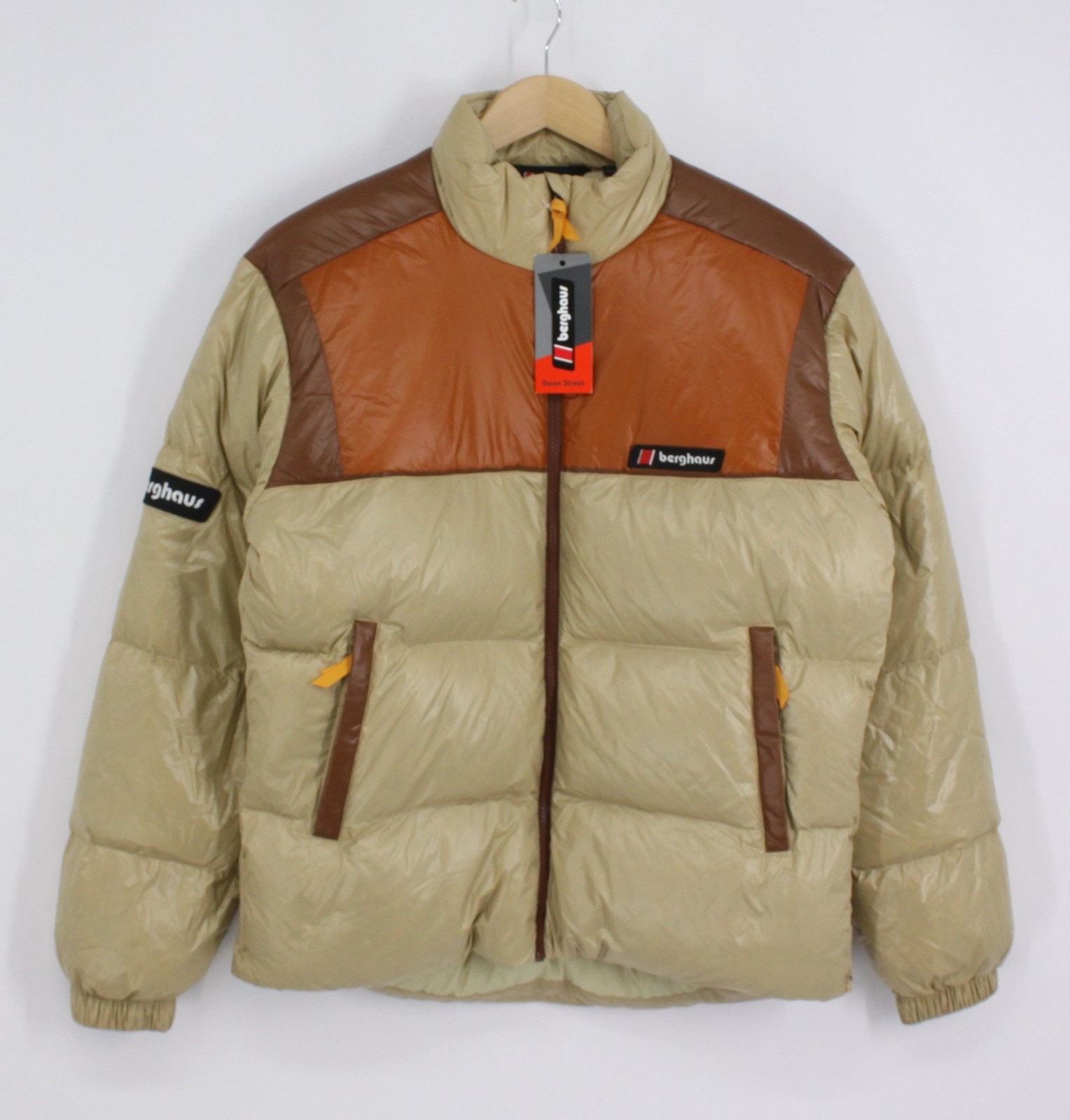 BERGHAUS UNISEX BLOCKBACK DOWN JACKET PUFFER SIZE S LIGHT BROWN RRP £195 IB