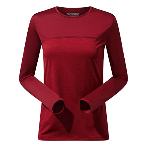 Berghaus Women's Voyager Long Sleeve Tech Tee Base Layer, Syrah/Red Dahlia, 14