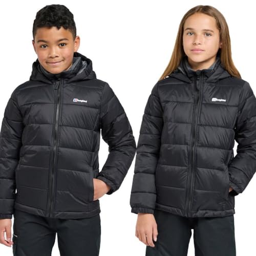 Berghaus Kids' Burham Insulated Jacket with Grown on Hood & 2 Pockets, Lightweight & Water Repellent, Winter Puffer Coat for Boys and Girls (UK, Age, 11 Years, 12 Years, Regular, Black)