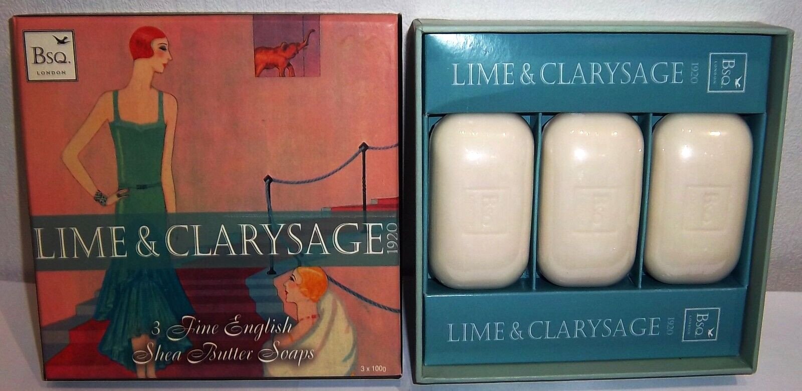 BERKELEY SQUARE LIME & CLARYSAGE SHEA BUTTER SOAP 100g x 3 NEW & BOXED GIFT SET