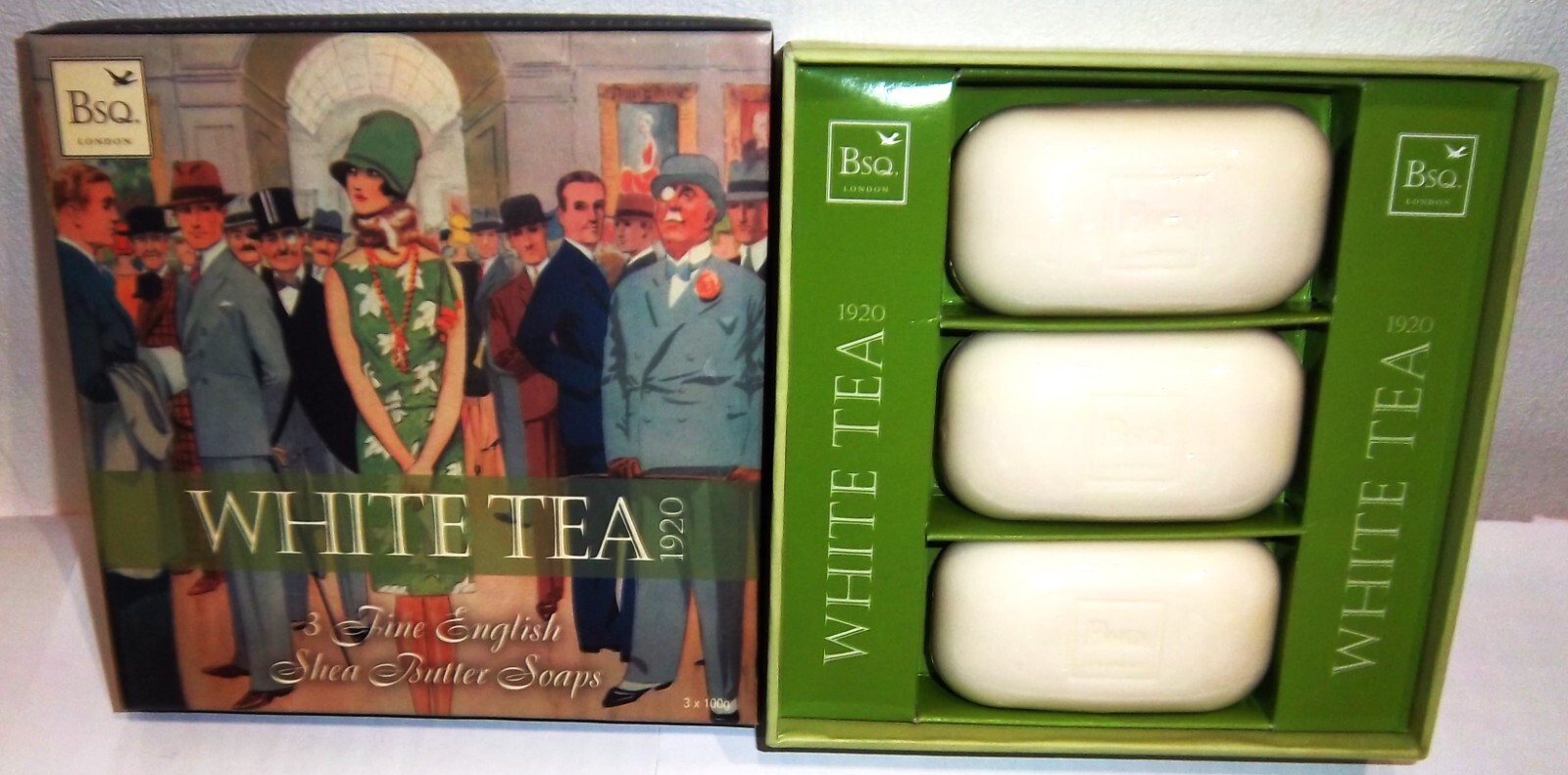 BERKELEY SQUARE WHITE TEA SHEA BUTTER SOAP 100g x 3 NEW & BOXED GIFT SET - BSQ