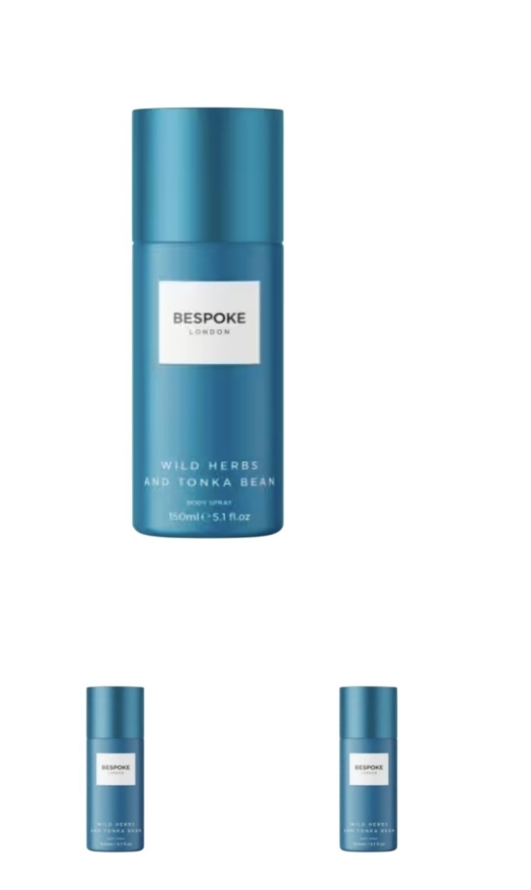 3x Bespoke London Wild Herbs & Tonka Bean Body Spray 150ml - 3x150ml Pack