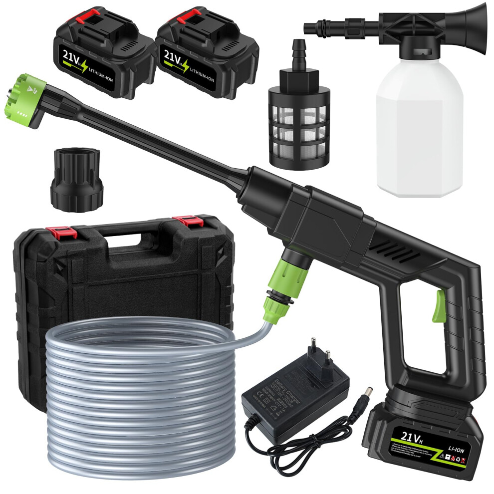 Cordless Pressure Washer, 21V Cordless Power Washer Kit 1500W Cordless High Pressure Washer Gun with 2 Nozzle, 16.5ft Hose, 2 Batteries, Battery Jet pressure Washer for Car Floor Gardening Cleaning
