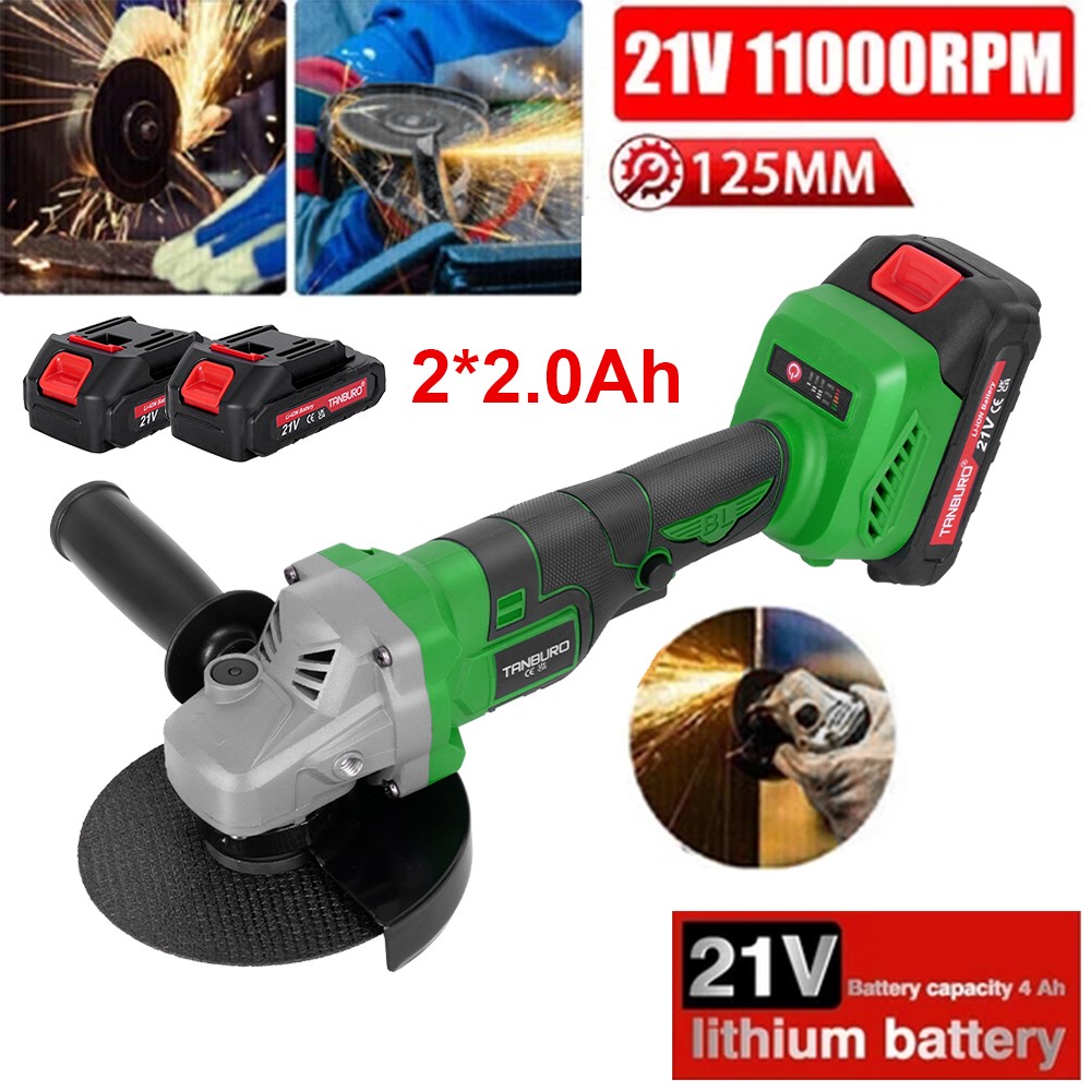 21V Cordless Angle Grinder Brushless 125mm with 2 Battery 3000mah and Charger UK