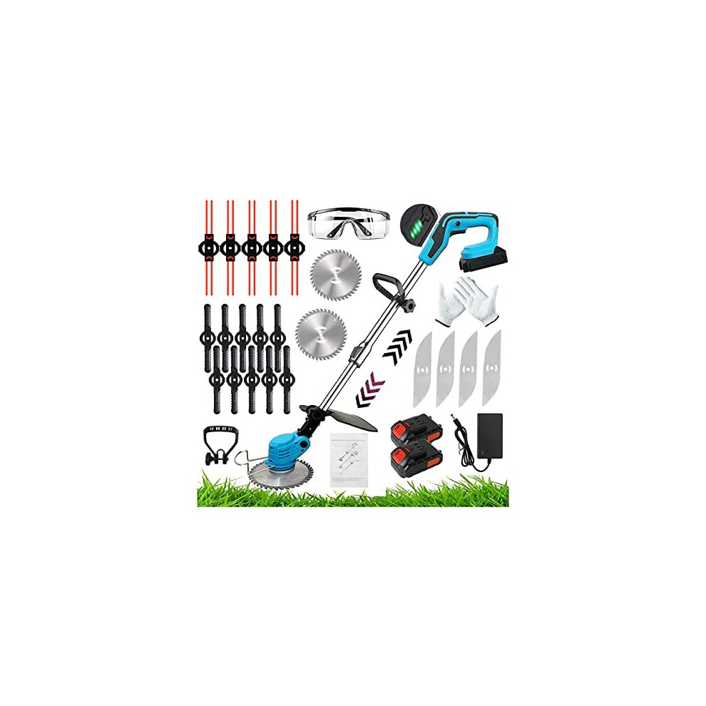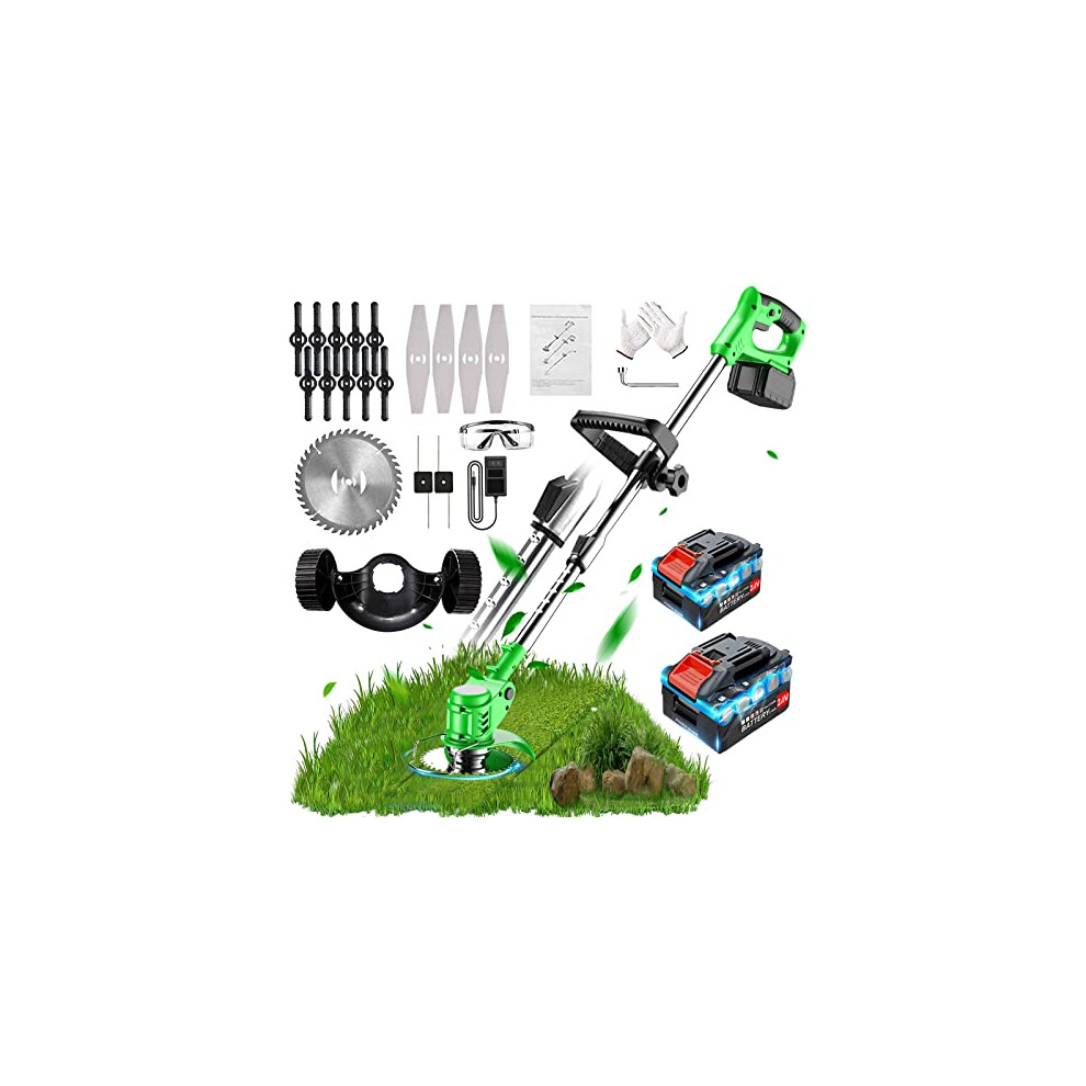 (2 Batteries) Cordless Grass Trimmer, Garden Strimmer/Edger with Battery Blades Electric Weed Cutter for Trimming Weeds Flower Trees