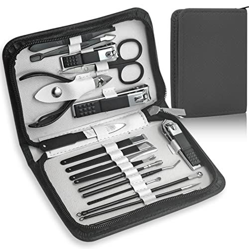 Owill Manicure Set, 18pcs Nail Clippers Pedicure Kit Nail Care Kit Professional Grooming Kit Tools Gift For Men Husband Friends and Parents (Black & Brown)
