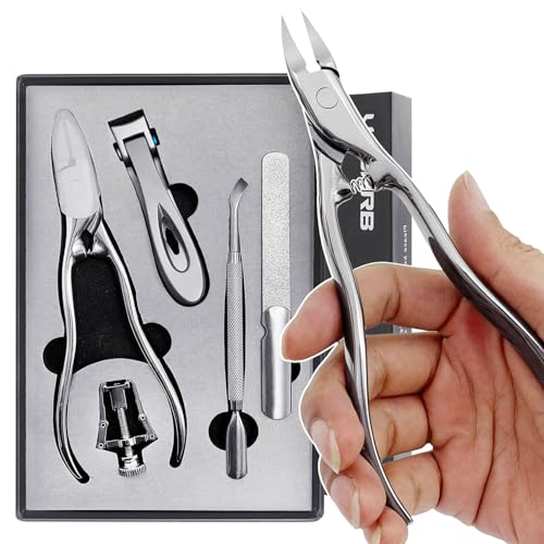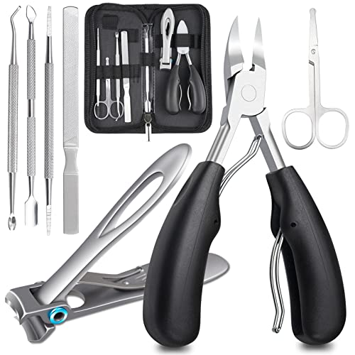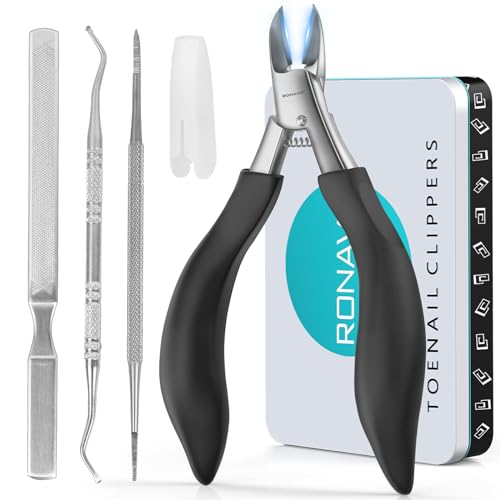 RONAVO Nail Clipper Set - Ingrown Toenail Treatment & Toenail Clippers for Thick Nails - Heavy Duty Professional Toe Nail Clippers for Men & Elderly, Large Toenail Scissors for Seniors/Mens/Women