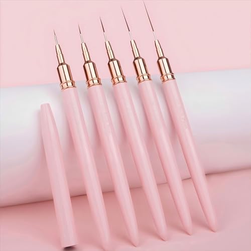 Nail Detail Brush Set with Pink Handle - Professional 5-Size Gel Art Tools for UK Technicians - Detailing/Dotting/Line Drawing (4-25mm) Premium Bristles (pink)