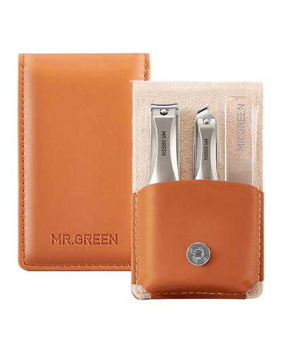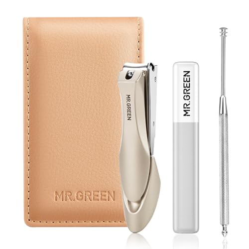 MR.GREEN Nail Clippers, 3PCS Nail Clipper Set with Anti Splash Fingernail Clipper,Ear Pick,Glass Nail File,Professional Nail Clippers for Men and Women, Stainless Steel Nail Cutter with Leather Case