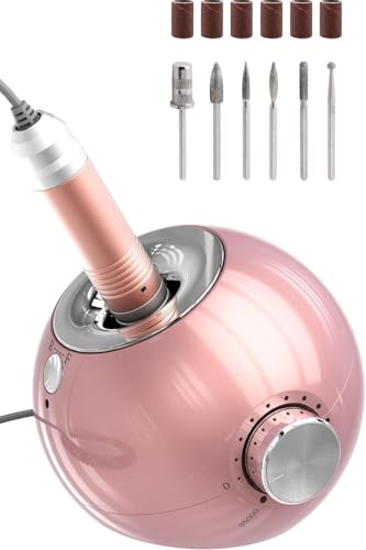 Delanie Nail Drill 35000RPM Professional Manicure Efile for Home and Salon Use with Six Sanding Bands and Drill Bits UK Plug(Wired-Pink)