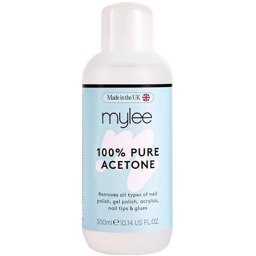 Mylee 100% Pure Acetone (300ml) - Gel Nail Polish Remover – Maximum Strength Professional Soak-Off for UV/LED, Acrylics, Nail Tips & Glue - Made in the UK