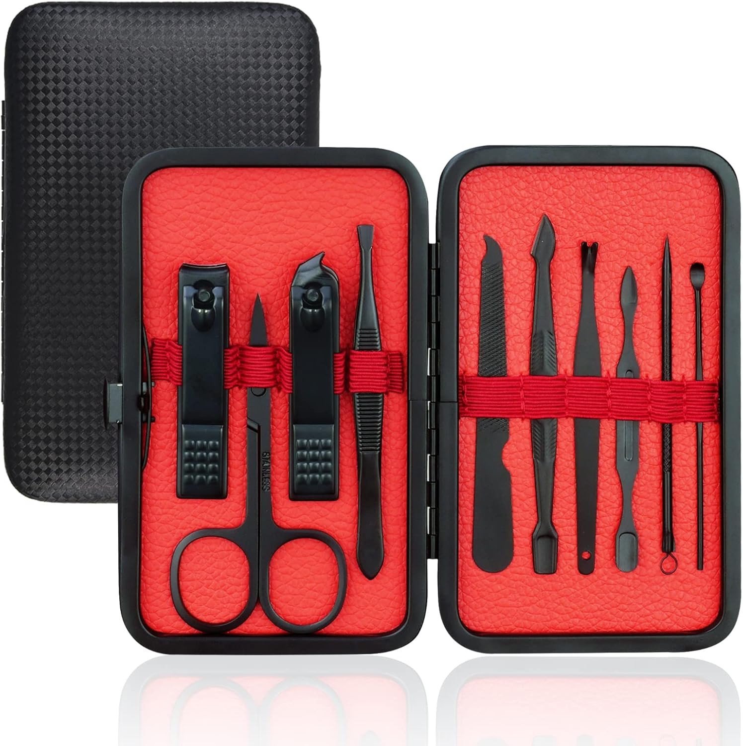 Professional Manicure Set, 10Pcs Portable Nail Clippers & Eyebrow Grooming Kit,