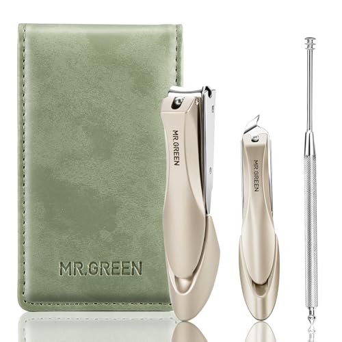 MR.GREEN Nail Clippers, 3PCS Nail Clipper Set with Anti Splash Fingernail Clipper and Ear Pick, Professional Nail Clippers for Men and Women, Stainless Steel Nail Cutter with Leather Case
