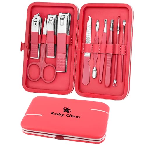 Manicure Set 10pcs Professional Nail Clippers Kit Pedicure Care Tools-Stainless Steel Grooming Tools for Travel (Red)