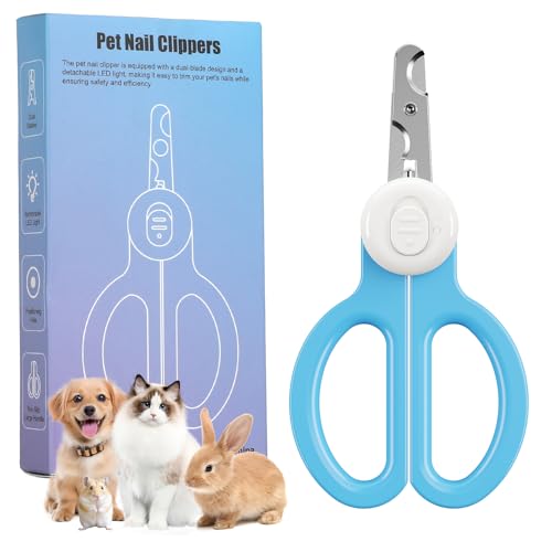 Euqvunn Cat Nail Clippers, Professional Cat Claw Clipper with Dual-Blade, Removable LED Lighting, Suitable for Kittens, Rabbits, Guinea Pigs, Birds, Puppies, Medium and Small Animals(Blue White)