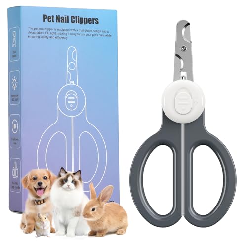Euqvunn Cat Nail Clippers, Professional Cat Claw Clipper with Dual-Blade, Removable LED Lighting, Suitable for Kittens, Rabbits, Guinea Pigs, Birds, Puppies, Medium and Small Animals(Gray White)