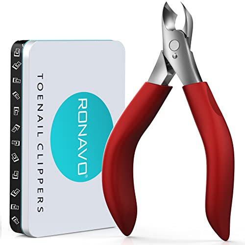 RONAVO Toenail Clippers for Thick Nails - Nail Clippers Set for Men.Heavy Duty Professional Thick & Ingrown Toe Nail Clipper, Large Toenail Scissors for Elderly/Mens/Women,Long Handle Safety(Red)