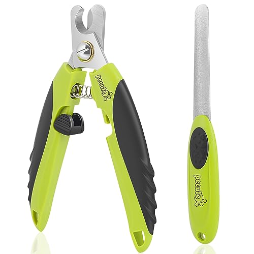 pecute Professional Dog Nail Clippers + Nail File 2 in 1 Set, Sharp Stainless Steel Pet Claw Trimmers with Safety Guards for Medium to Large Dogs