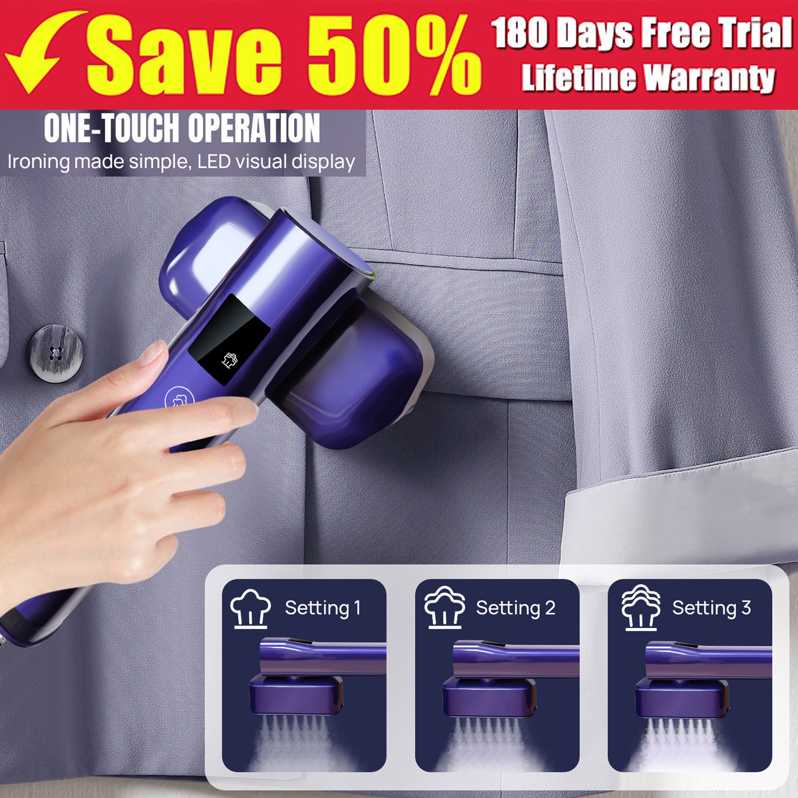 Portable Travel Steamer for Clothes, 1200W Powerful Garment Steamer,15s Fast Heat-Up,12 Mins Continuous Steam,5 Modes,Large LED Display,Handheld Clothes Steamer with UK Plug for Travel & Home(Purple)