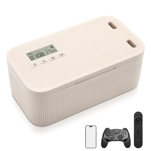 Neulriscn Safe Timed Lock Box, Phone Lock Box with Timer, Unplug from Phones, Video Games, Social Media, Snacks & Cravings, Self-Control Timer Locker Lockable Storage Boxes for Better Habits, Beige