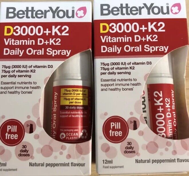 BetterYou Vitamin D3 K2 Oral Spray 3000IU MK7 Immune Bone Support Peppermint UK
