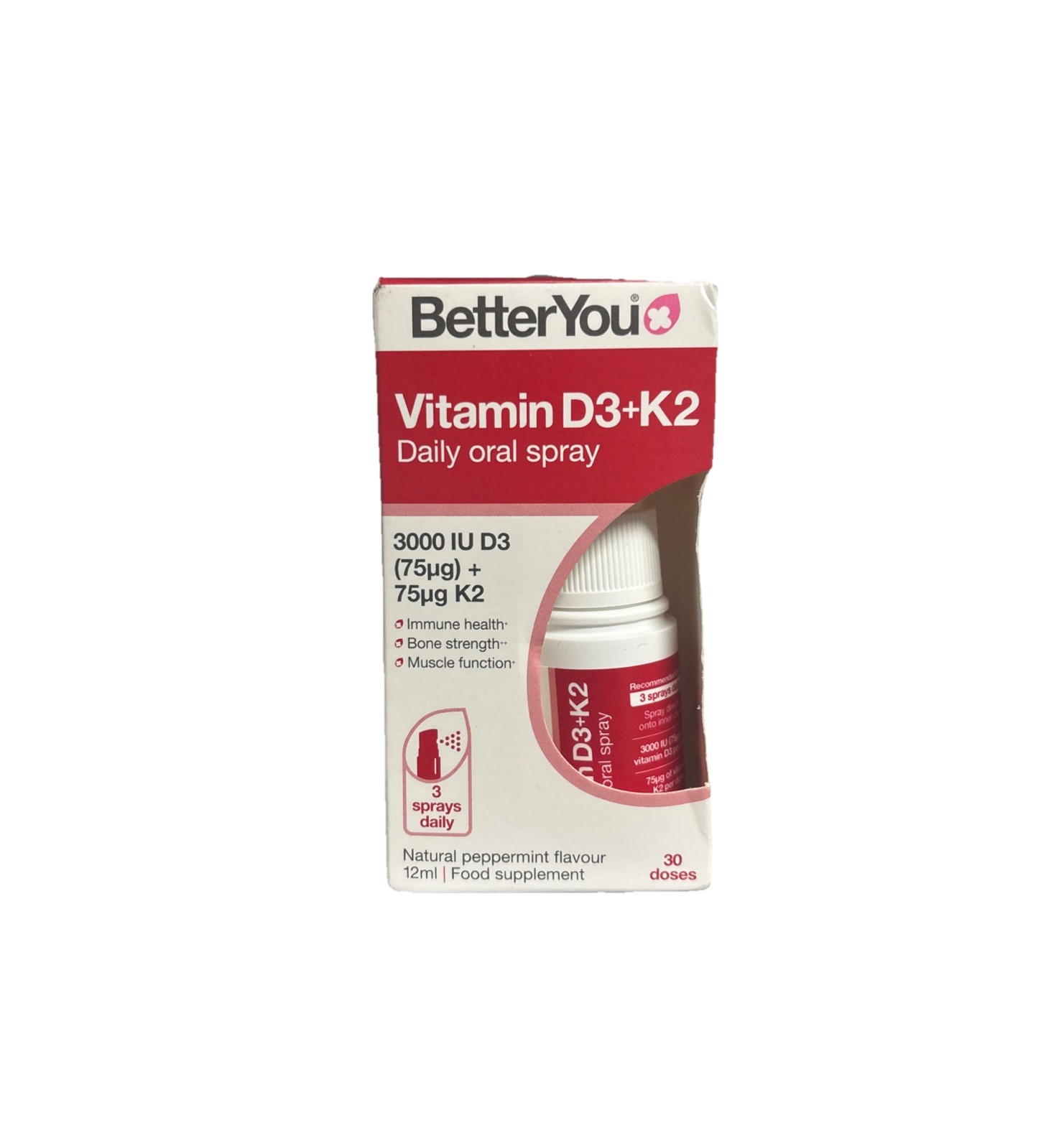 BetterYou Vitamin D+K2 3000IU Bones Support Peppermint Oral Spray Pack 2 x 12ml
