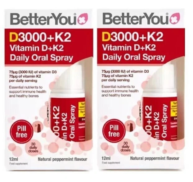 BetterYou Vitamin D3000+K2 Daily Oral Spray Natural Daily Multivitamin Spray X2