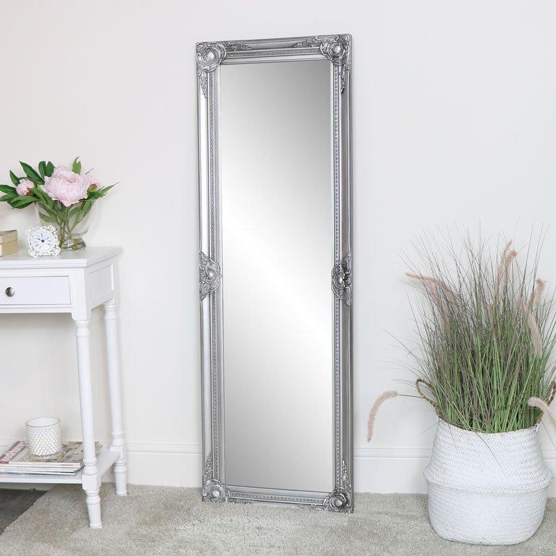 Tall Silver Ornate Bevelled Mirror 47cm X 142cm