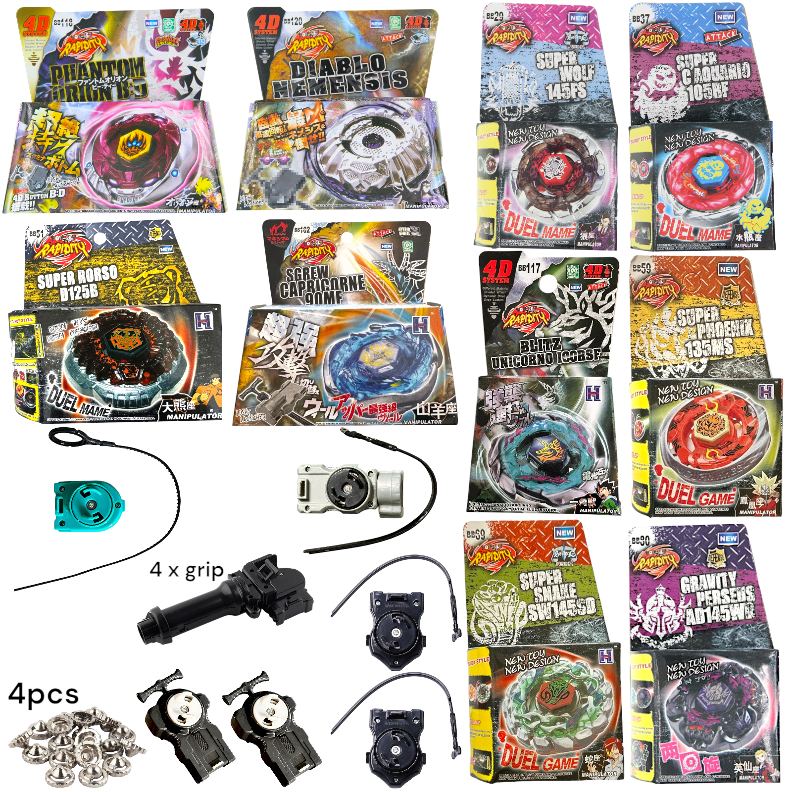 BEYBLADE 10x Metal Fusion Tops Beys + 6 Launchers –4 Grips Metal Fight | Burst X