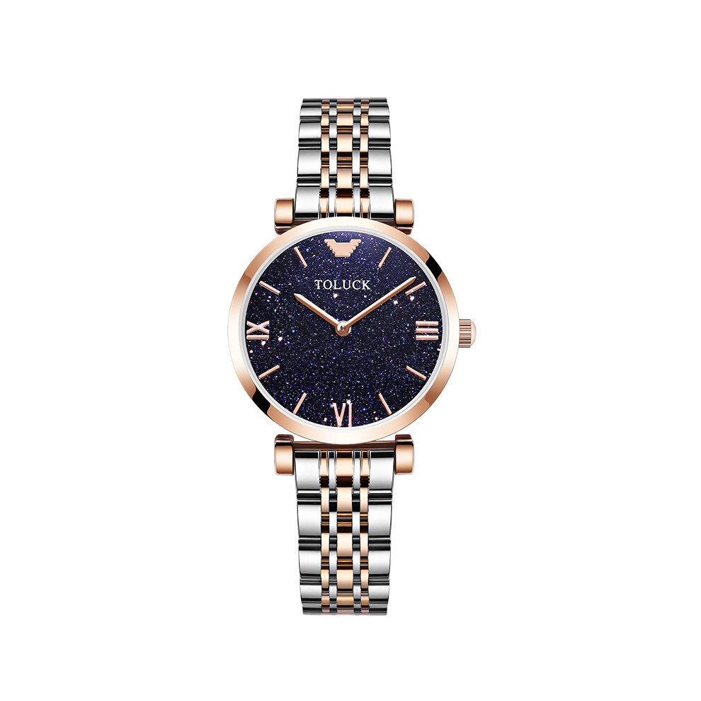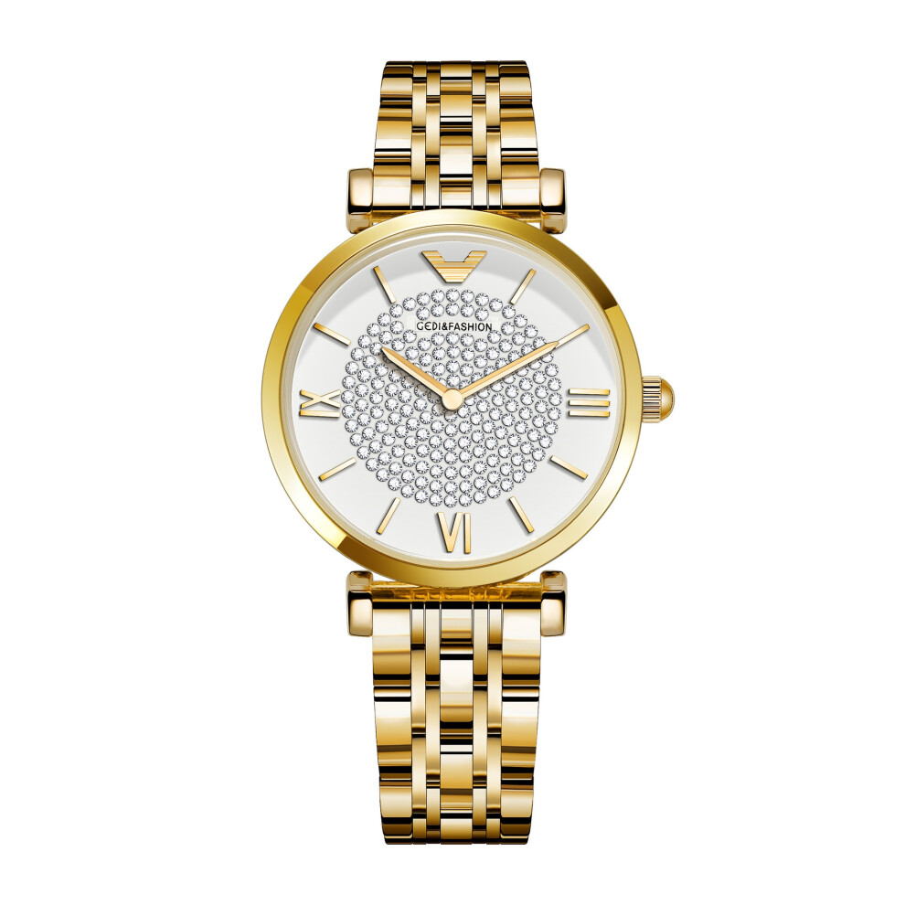 (A sky full of golden stars) A fashionable and trendy solid steel band, simple and ultra-thin waterproof ladies' watch